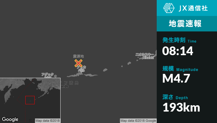 | 震源地 | アラスカのAtkaから北北西58kmの地点 |