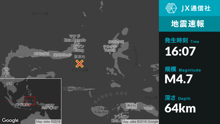 | 震源地 | インドネシアのModayagから南東110kmの地点 |
