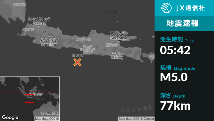 | 震源地 | インドネシアのSrandakanから南西101kmの地点 |