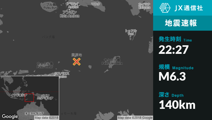 | 震源地 | インドネシアのSaumlakiから西北西293kmの地点 |