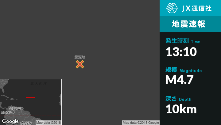 | 震源地 | バルバドスのBathshebaから東北東1064kmの地点 |