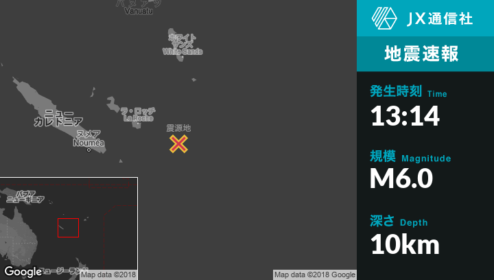 | 震源地 | ニューカレドニアのTadineから東南東155kmの地点 |