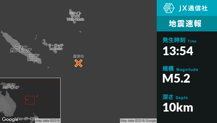 | 震源地 | ニューカレドニアのTadineから東南東198kmの地点 |