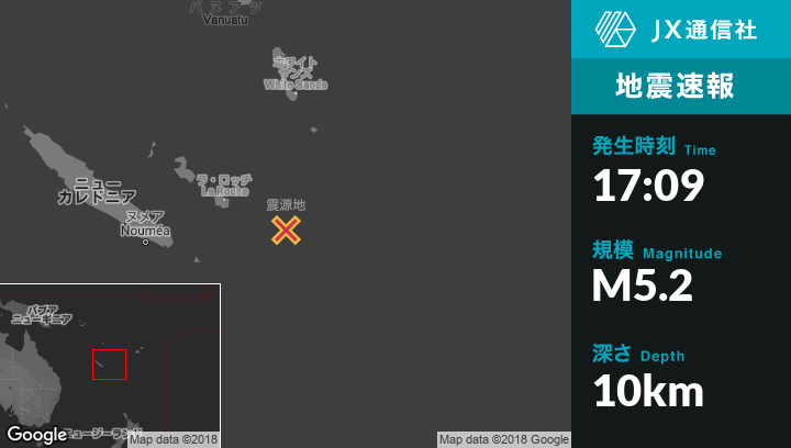 | 震源地 | ニューカレドニアのTadineから東南東148kmの地点 |