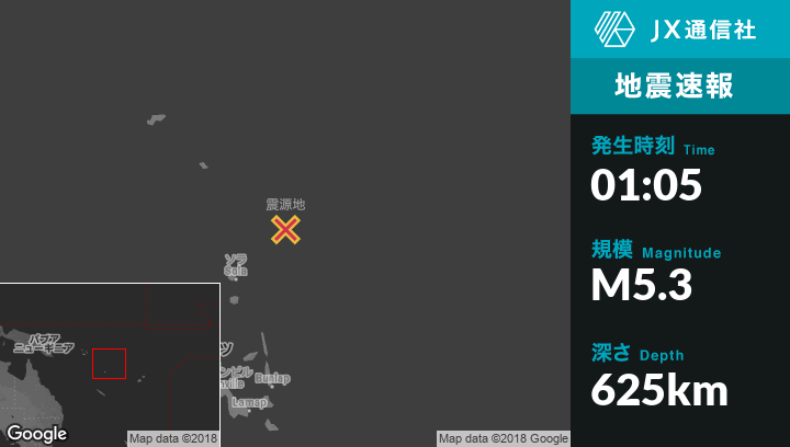 | 震源地 | バヌアツのSolaから北東160kmの地点 |
