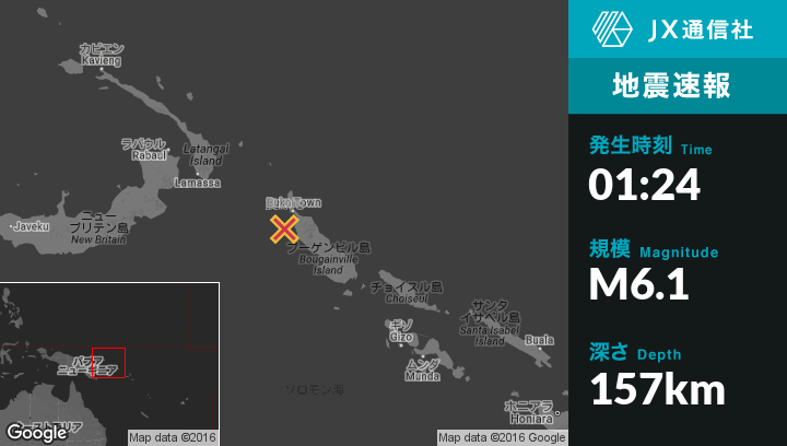 | 震源地 | パプア ニューギニア独立国のArawaから西北西131kmの地点 |