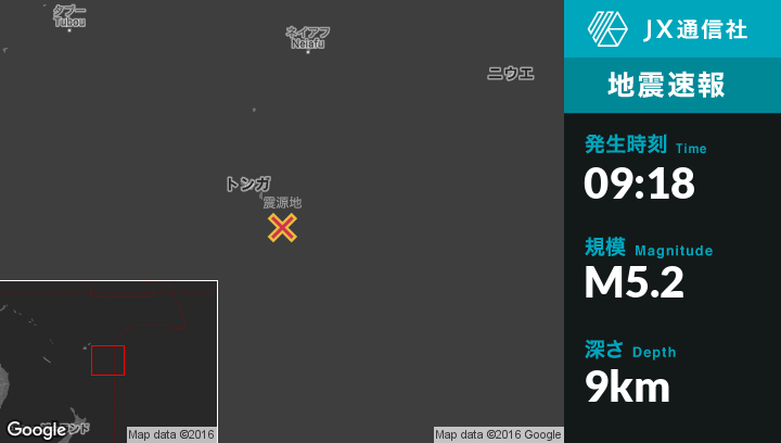 | 震源地 | トンガの`Ohonuaから南東74kmの地点 |