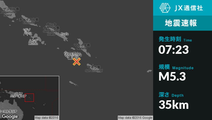 12月16日 07:23頃、ソロモン諸島のHoniaraから南東82kmの地点でM5.3の地震がありました。