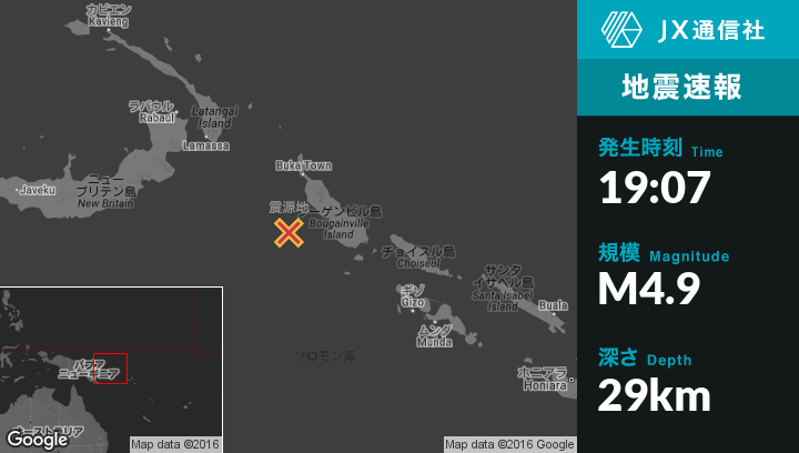 | 震源地 | パプア ニューギニア独立国のPangunaから西124kmの地点 |