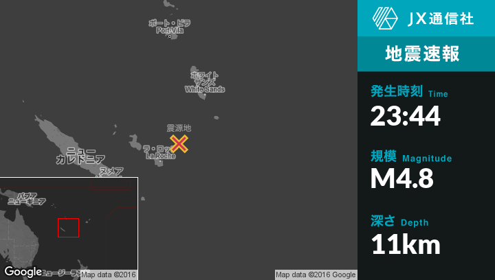 | 震源地 | ニューカレドニアのTadineから北東107kmの地点 |