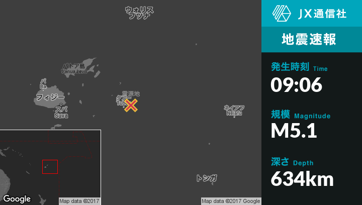 | 震源地 | フィジーのLambasaから南東287kmの地点 |