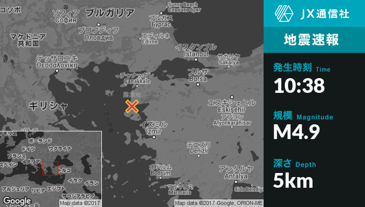 2月08日 10:38頃、トルコのBehramから西北西14kmの地点でM4.9の地震がありました。