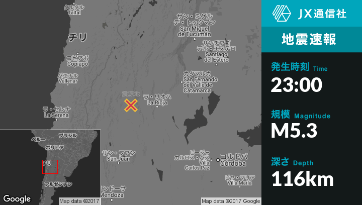 | 震源地 | アルゼンチンのChilecitoから西50kmの地点 |