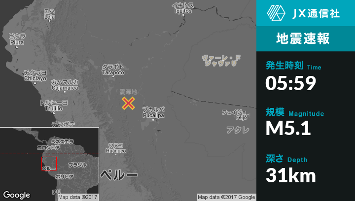 | 震源地 | ペルーのContamanaから西南西77kmの地点 |