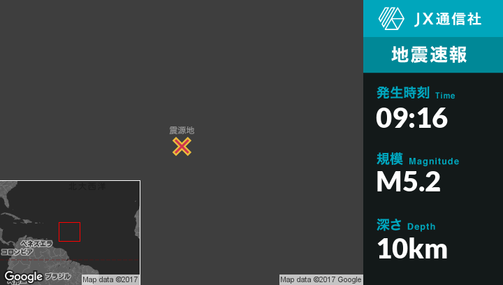| 震源地 | フランス領ギアナのSinnamaryから北北東975kmの地点 |