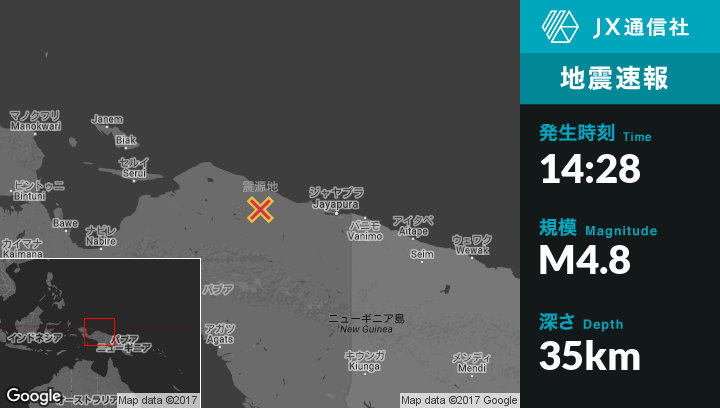 8月03日 14:28頃、インドネシアのAbepuraから西178kmの地点でM4.8の地震がありました。