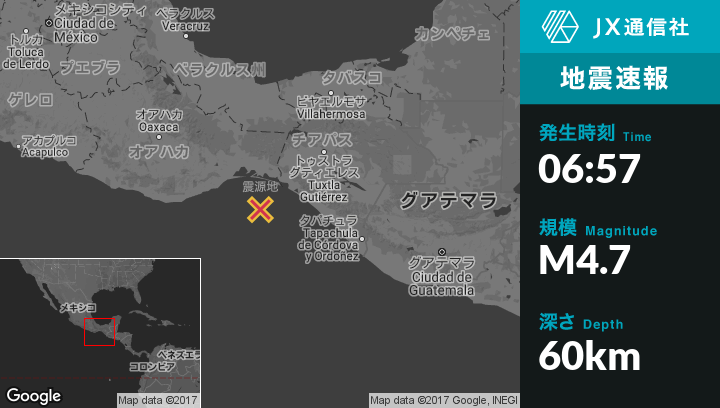 | 震源地 | メキシコのSan Francisco del Marから南南東67kmの地点 |