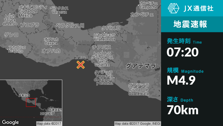 | 震源地 | メキシコのSan Francisco del Marから南33kmの地点 |
