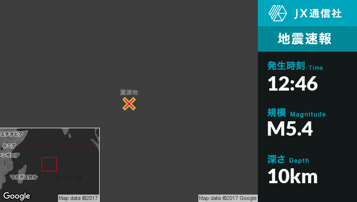 | 震源地 | モーリシャスのPort Mathurinから北北東822kmの地点 |