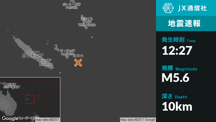 | 震源地 | ニューカレドニアのTadineから東南東98kmの地点 |