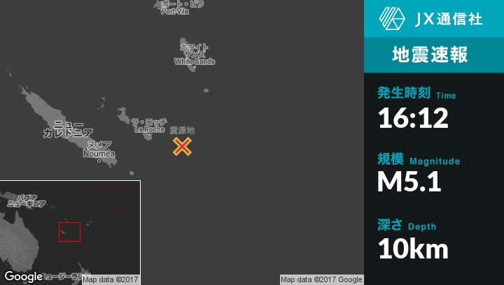 | 震源地 | ニューカレドニアのTadineから東123kmの地点 |