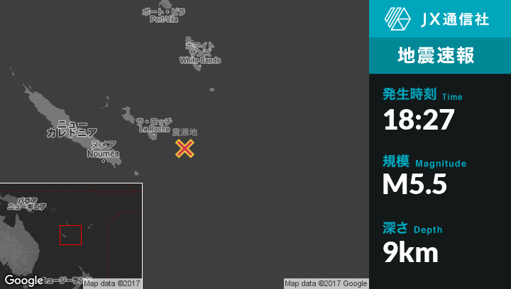 | 震源地 | ニューカレドニアのTadineから東南東115kmの地点 |