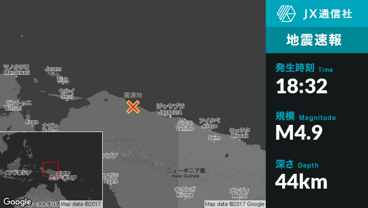 | 震源地 | インドネシアのAbepuraから西北西181kmの地点 |
