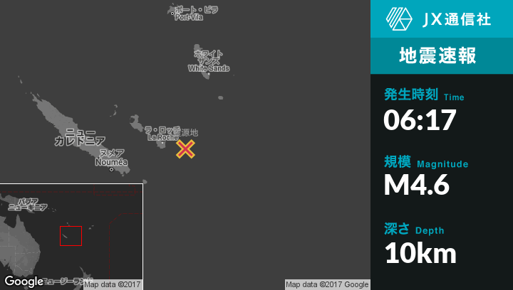 | 震源地 | ニューカレドニアのTadineから東86kmの地点 |