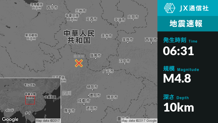 11月07日 06:31頃、中国のYongleから西49kmの地点でM4.8の地震がありました。