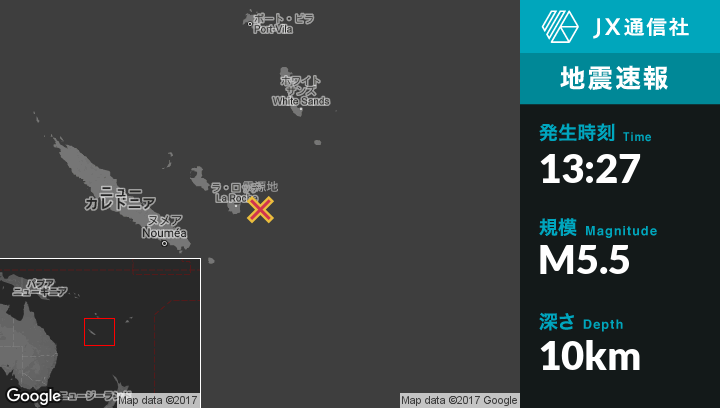 | 震源地 | ニューカレドニアのTadineから東69kmの地点 |