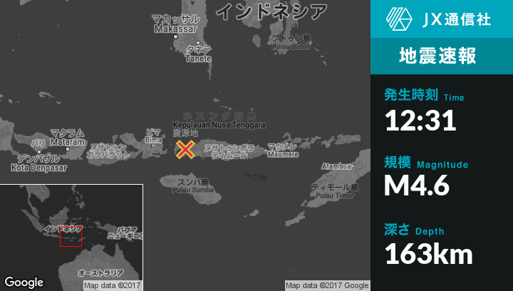 | 震源地 | インドネシアのCempaから西16kmの地点 |
