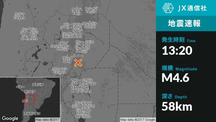 | 震源地 | アルゼンチンのEl Galponから北21kmの地点 |