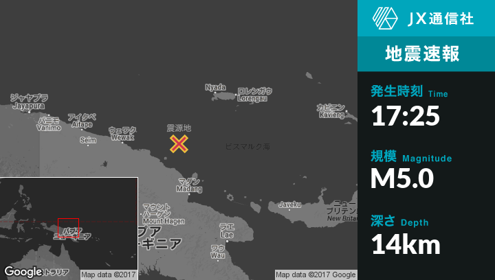 | 震源地 | パプアニューギニアのAngoramから東北東168kmの地点 |