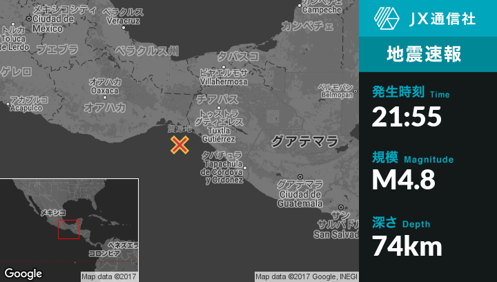 | 震源地 | メキシコのParedonから西南西62kmの地点 |