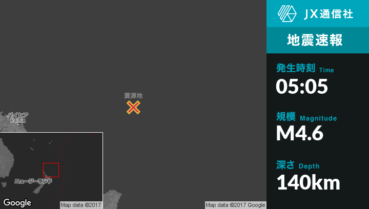 | 震源地 | ニュージーランドのWhitiangaから北東392kmの地点 |