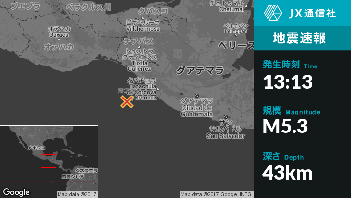 | 震源地 | メキシコのMapastepecから南西133kmの地点 |