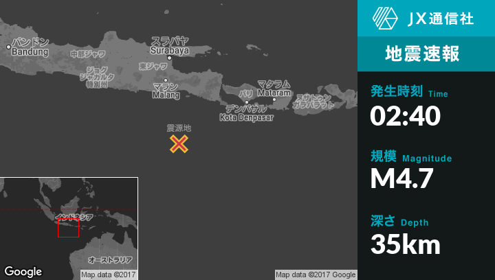 | 震源地 | インドネシアのKrajan Tambakrejoから南南東164kmの地点 |