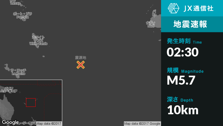 | 震源地 | ニューカレドニアのIle Hunterから北北東200kmの地点 |