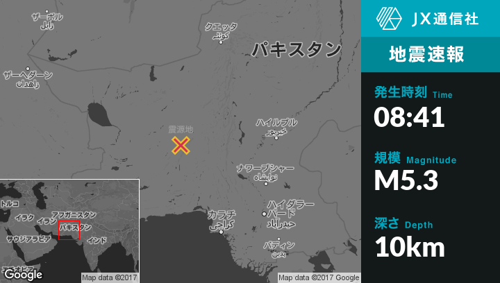 | 震源地 | パキスタンのKhuzdarから西南西96kmの地点 |