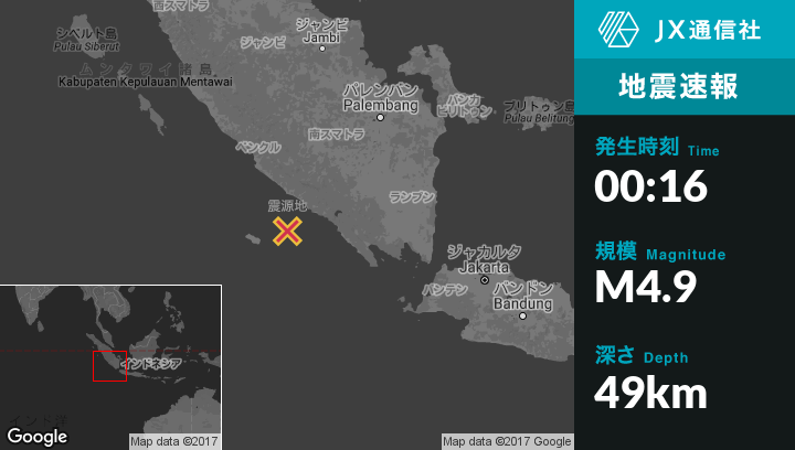 | 震源地 | インドネシアのKuripanから西95kmの地点 |