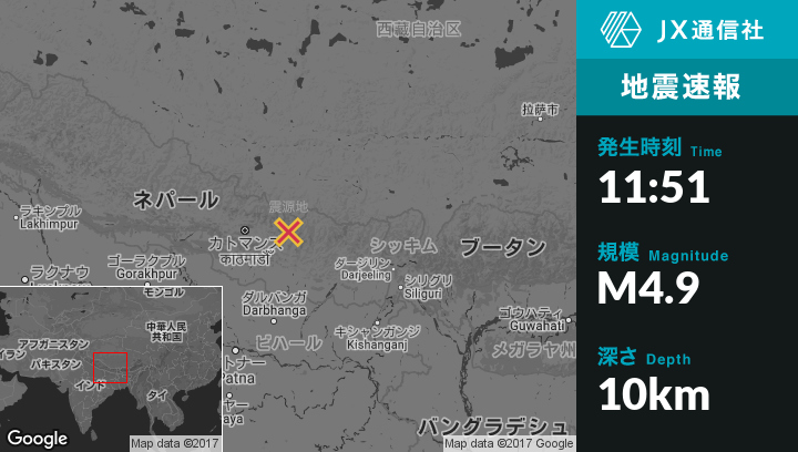 12月08日 11:51頃、中国のZuobudeから南南西25kmの地点でM4.9の地震がありました。