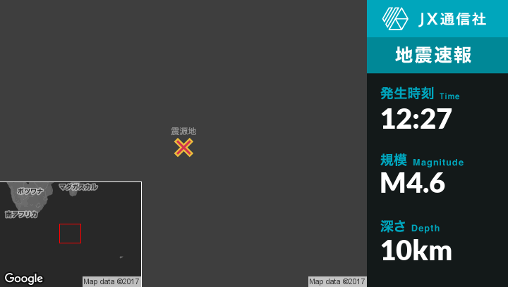 12月11日 12:27頃、フランス南部準州のIle aux Cochonsから北西731kmの地点でM4.6の地震がありました。