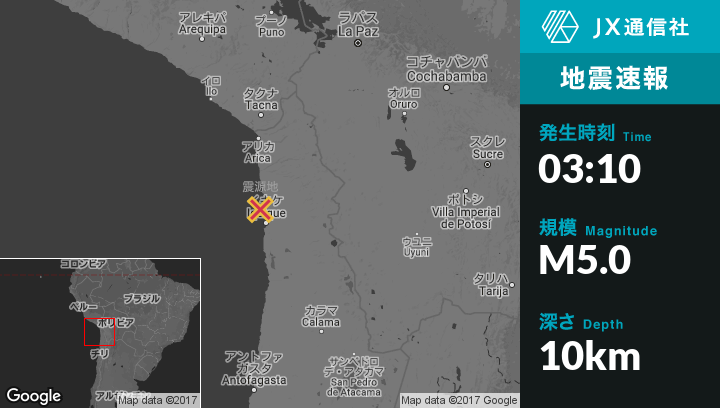 | 震源地 | チリのIquiqueから北北西42kmの地点 |