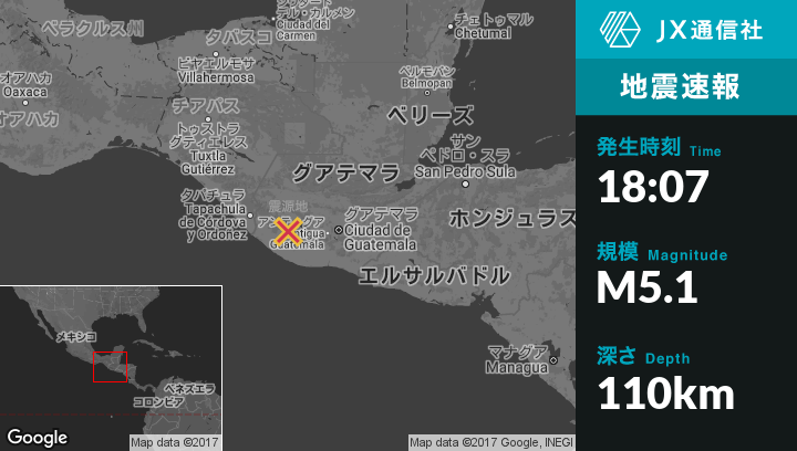 | 震源地 | グアテマラのPueblo Nuevoから北北東5kmの地点 |