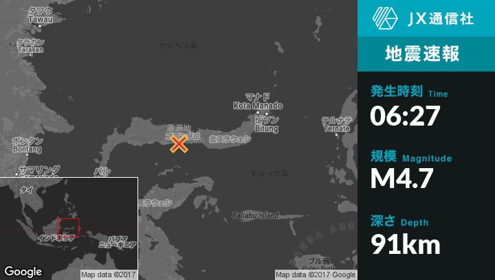 | 震源地 | インドネシアのTilamutaから北北西6kmの地点 |
