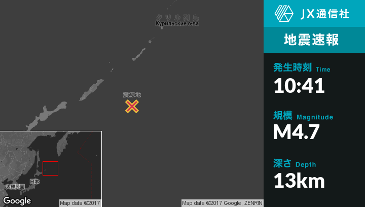 12月16日 10:41頃、ロシアのKuril'skから東299kmの地点でM4.7の地震がありました。