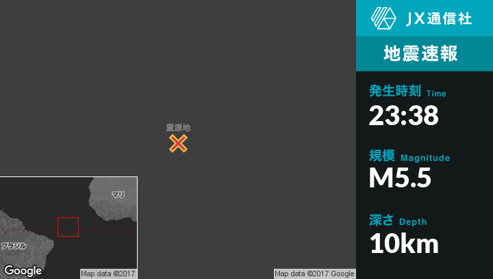 | 震源地 | ブラジルのFernando de Noronha (Distrito Estadual)から北東751kmの地点 |