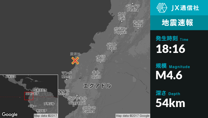 | 震源地 | エクアドルのMuisneから西南西5kmの地点 |
