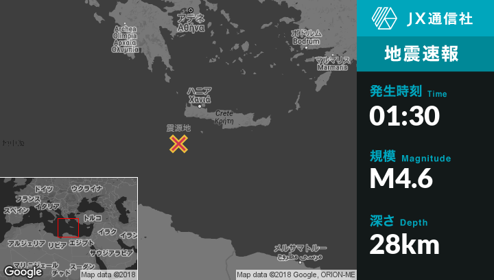 | 震源地 | ギリシャのPalaiochoraから南南西74kmの地点 |