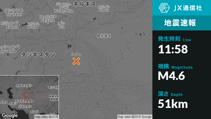 | 震源地 | タジキスタンのMurghobから北北西10kmの地点 |